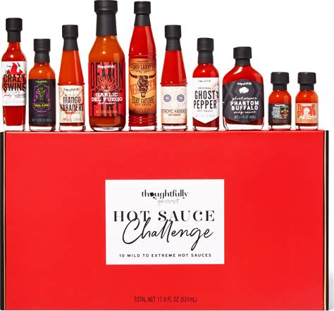 Thoughtfully Hot Sauce Challenge, Mild To Extreme Hot Sauce Variety 10 Pack, Unique Gift For Men, Husband, Dad, Father, Birthday And Christmas
